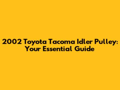 Hey there, fellow Toyota Tacoma enthusiasts! If you're here, chances are you're dealing with some issues related to your 2002 Toyota Tacoma's idler pulley. Don't worry, you're in the right place! We're going to dive deep into everything you need to know about this often-overlooked component, from identifying problems to understanding the replacement process and the costs involved. Let's get started, shall we?