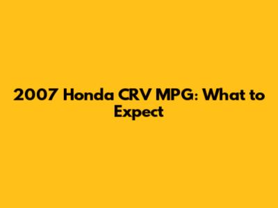 2007 Honda CRV MPG: What To Expect