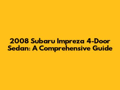 2008 Subaru Impreza 4-Door Sedan: A Comprehensive Guide