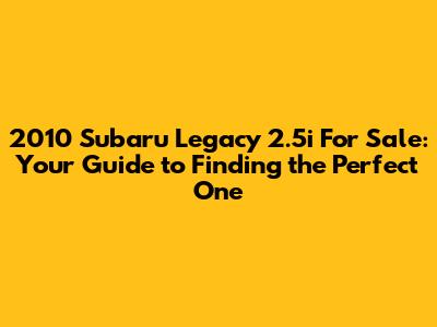 Hey guys! Are you in the market for a reliable and stylish sedan? Looking at a 2010 Subaru Legacy 2.5i could be a fantastic choice. This car is known for its practicality, safety features, and of course, that legendary Subaru all-wheel-drive. In this article, we will explore everything you need to know about finding the perfect 2010 Subaru Legacy 2.5i for sale. We'll cover what makes this model year special, what to look for when buying used, and how to ensure you're getting a great deal. Whether you're a seasoned Subaru enthusiast or new to the brand, this guide will give you all the details to make an informed decision. From performance and reliability to common issues and maintenance, we will dive deep into the world of the 2010 Subaru Legacy 2.5i.