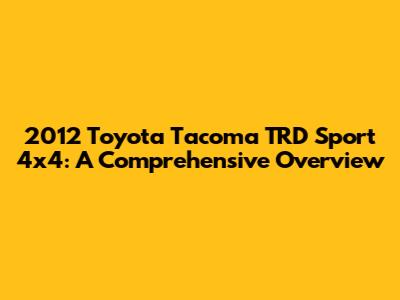 Hey guys! If you're here, you're probably curious about the 2012 Toyota Tacoma TRD Sport 4x4. Well, you've come to the right place. We're diving deep into everything you need to know about this popular pickup truck. From its features and performance to reliability and ownership experiences, we'll cover it all. So, buckle up and let's get started!