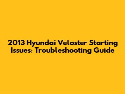 2013 Hyundai Veloster Starting Issues: Troubleshoot Guide