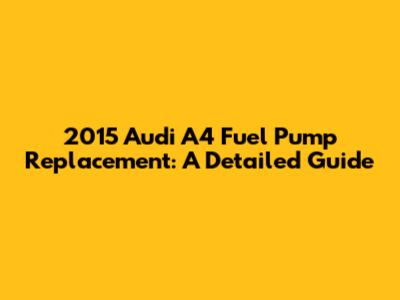2015 Audi A4 Fuel Pump Replacement: A Detailed Guide