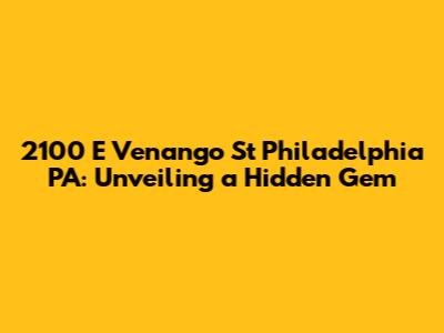 2100 E Venango St Philadelphia: A Deep Dive