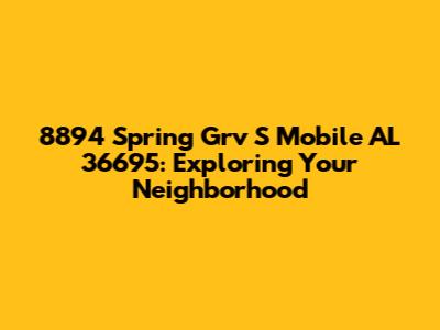 Hey there, folks! Let's dive into the details of 8894 Spring Grv S Mobile AL 36695. This address isn't just a string of numbers and letters; it's a gateway to understanding a specific location in Mobile, Alabama. Whether you're a potential resident, a curious investor, or just someone who loves to explore, we're gonna break down everything you need to know about this spot. We'll look at the neighborhood, the real estate market, local amenities, and much more. Buckle up, because we're about to embark on a virtual tour! We'll explore what makes this area tick and why it might be the perfect place for you. We're talking about the vibe, the lifestyle, and the everyday experiences that define this part of Mobile. Understanding a location goes way beyond just knowing the address; it's about getting a feel for the community, the convenience, and the overall quality of life. So, let's get started and uncover the unique characteristics that make this address so special. Let's see what makes this area tick! Let's explore everything from the community vibe to the local businesses. This exploration can help you make informed decisions, whether you're thinking of moving, investing, or simply expanding your knowledge of Mobile, Alabama. We'll delve into the essentials that matter most, from property values to schools, to make sure you have a comprehensive understanding of what 8894 Spring Grv S Mobile AL 36695 has to offer. Understanding the local landscape, amenities, and the overall feel of the neighborhood is essential when you're looking for a new place to live, invest in property, or even start a business. With this exploration, you can gain valuable insights to help you make informed decisions. We're talking about the kind of information that turns a simple address into a real, lived experience.