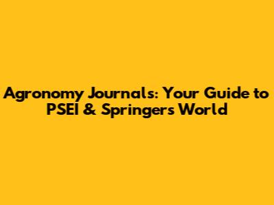 Agronomy Journals: Your Guide To PSEI & Springer's World