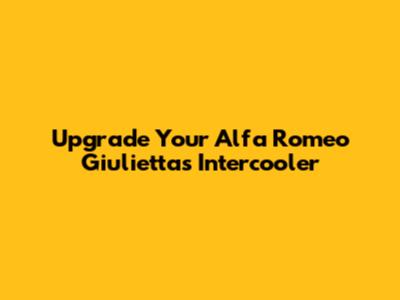Why Upgrading Your Giulietta's Intercooler Matters
