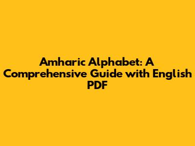 Amharic Alphabet: A Comprehensive Guide With English PDF