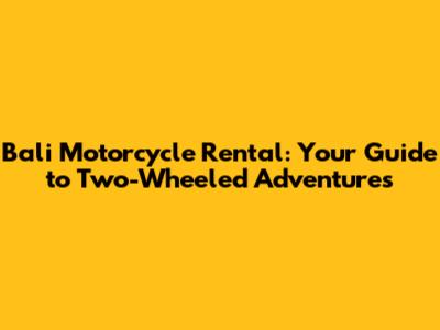 Bali Motorcycle Rental: Your Guide To Two-Wheeled Adventures