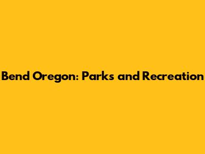 Bend Oregon: Parks And Recreation