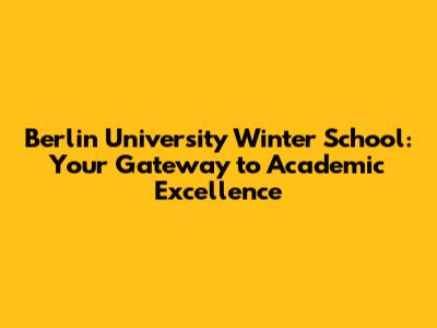 Berlin Winter School: Your Gateway To Academic Excellence