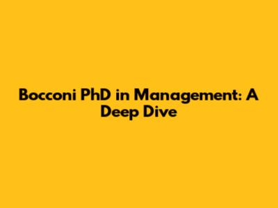 Hey guys! Let's talk about something that could seriously level up your career game: a PhD in Management from Bocconi University. This isn't just any degree; it's a ticket to a world of opportunities. Bocconi is a big name in the business world, known for its top-notch programs and global reputation. If you're aiming for a career in academia, research, or a high-level management role, then this might be the perfect path for you. We'll explore what makes the Bocconi PhD in Management so special, what you can expect from the program, and how to increase your chances of getting accepted. Buckle up, because we're about to dive deep!