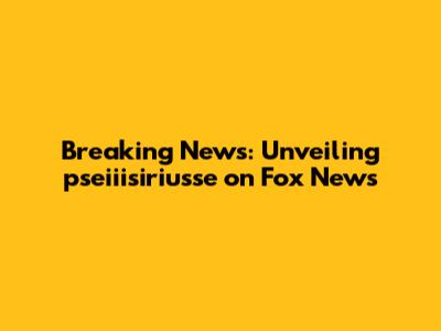 Breaking News: Unveiling Pseiiisiriusse On Fox News
