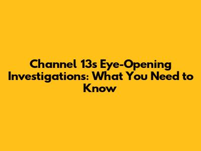 Channel 13's Eye-Opening Investigations: What You Need To Know