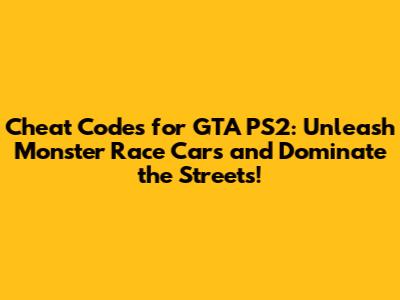 Cheat Codes For GTA PS2: Monster Race Cars & More!