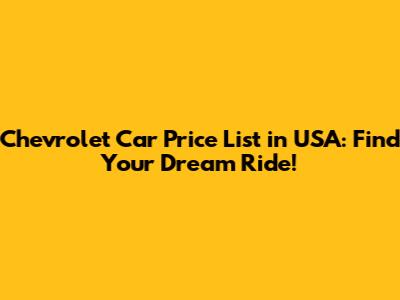 Chevrolet Car Price List In USA: Find Your Dream Ride!