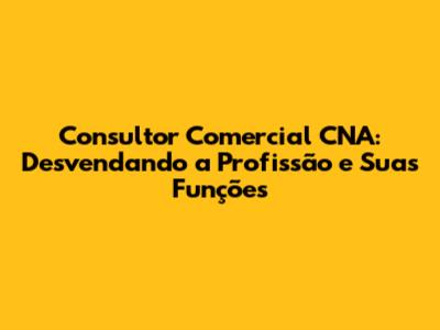 Consultor Comercial CNA: O Que Faz E Como Se Destacar