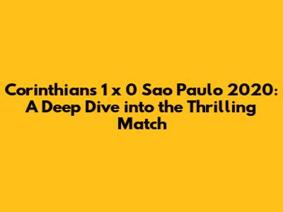 Hey guys! Let's dive into that epic Corinthians vs. Sao Paulo match from 2020. This wasn't just another game; it was a battle, a clash of titans, and a whole lot of drama packed into 90 minutes. We're talking about more than just a scoreline here – we're breaking down the tactics, the key players, and the overall impact of this memorable victory.