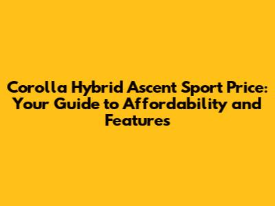 Corolla Hybrid Ascent Sport Price: All You Need To Know