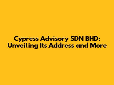 Hey there, data enthusiasts and business aficionados! Ever found yourself scratching your head, trying to pinpoint the exact location of Cypress Advisory SDN BHD? Well, you're not alone! Knowing where a company is based is super important, whether you're a potential client, a future employee, or just a curious individual doing some research. This article is your ultimate guide to uncovering the address of Cypress Advisory SDN BHD, along with a peek into what they do and how you can get in touch. So, buckle up, and let's dive into the details!