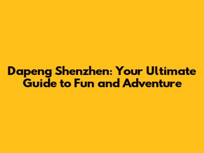 Dapeng Shenzhen: Your Ultimate Guide To Fun And Adventure