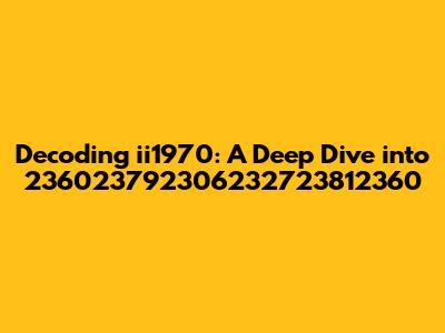 Decoding Ii1970: A Deep Dive Into 236023792306232723812360