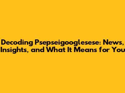 Decoding Psepseigooglesese: News, Insights, And What It Means For You