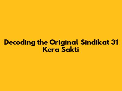 Decoding The Original Sindikat 31 Kera Sakti