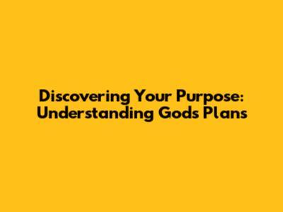 Discovering Your Purpose: Understanding God's Plans