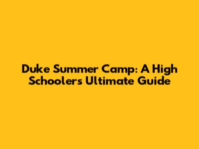 Duke Summer Camp: A High Schooler's Ultimate Guide