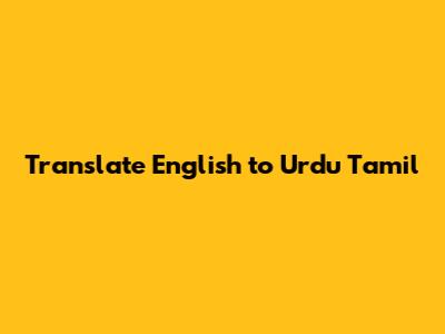 English To Urdu & Tamil Translation: Fast & Accurate