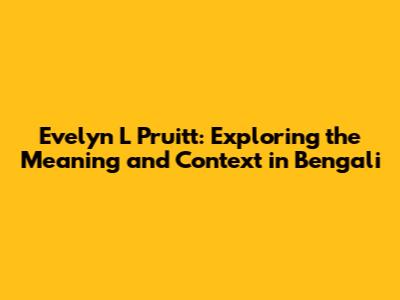 Hey guys! Ever stumbled upon a name and wondered about its significance, especially when viewed through the lens of another language and culture? Today, we're diving deep into the name Evelyn L Pruitt and exploring its potential meaning and relevance within the Bengali context. Names carry so much weight, don't they? They're like little capsules of history, culture, and identity. So, let's unpack this name and see what we can discover!