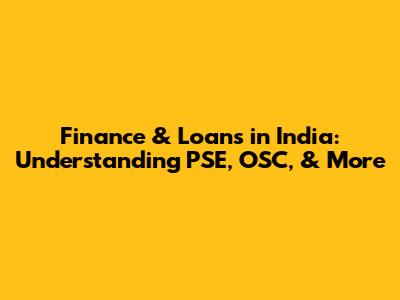 Finance & Loans In India: Understanding PSE, OSC, & More