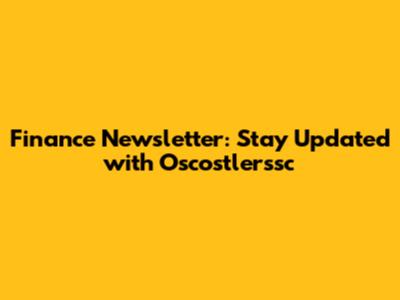 Finance Newsletter: Stay Updated With Oscostlerssc