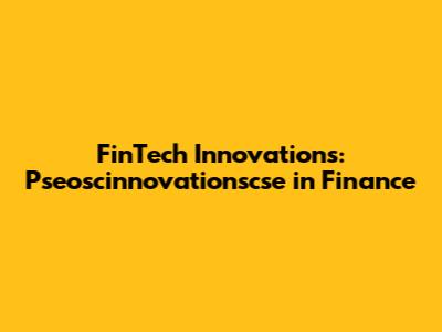 FinTech Innovations: Pseoscinnovationscse In Finance