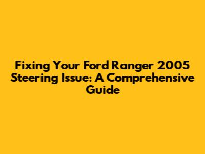 Fixing Your Ford Ranger 2005 Steering Issue: A Comprehensive Guide