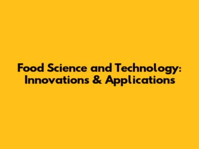 Food Science And Technology: Innovations & Applications