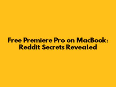 Free Premiere Pro On MacBook: Reddit Secrets Revealed