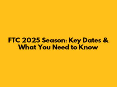 FTC 2025 Season: Key Dates & What You Need To Know