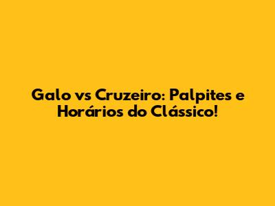 Galo Vs Cruzeiro: Palpites E Horários Do Clássico!
