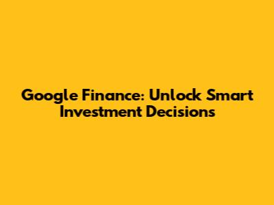 Google Finance: Unlock Smart Investment Decisions