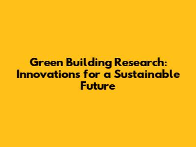 Green Building Research: Innovations For A Sustainable Future