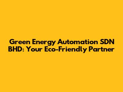 Green Energy Automation SDN BHD: Your Eco-Friendly Partner