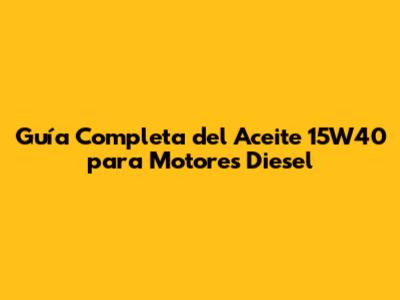 Guía Completa Del Aceite 15W40 Para Motores Diesel