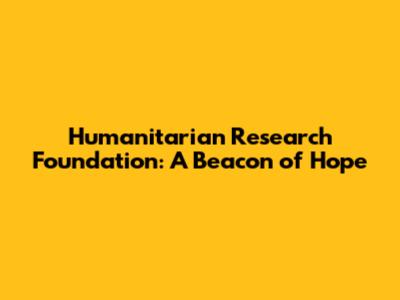Humanitarian Research Foundation: Helping Those In Need