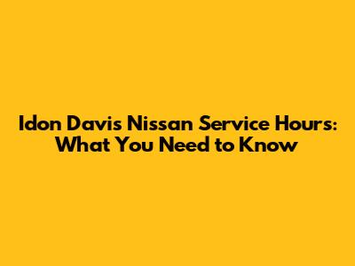 Idon Davis Nissan Service Hours: Your Guide