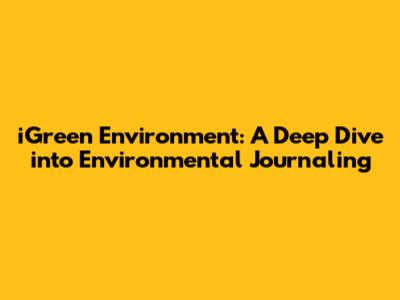 What is iGreen Environment? Unveiling the Journal's Core