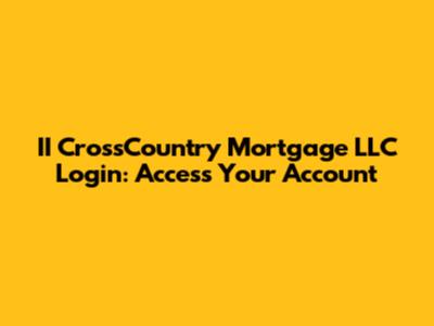 II CrossCountry Mortgage LLC Login: Access Your Account