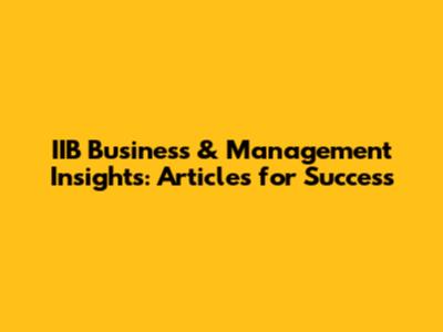 IIB Business & Management Insights: Articles For Success