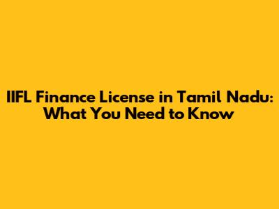 IIFL Finance License In Tamil Nadu: What You Need To Know